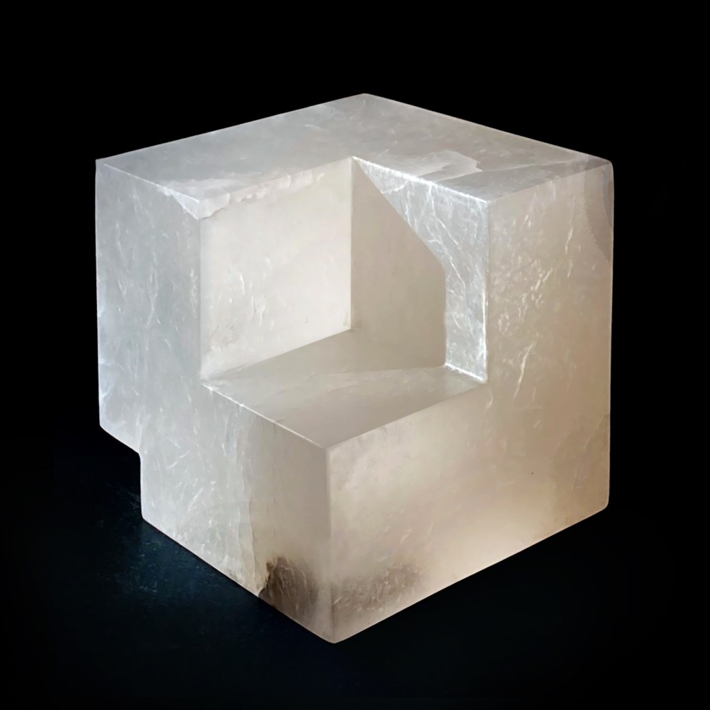 Comprender a Oteiza, Alabastro, 16x16x16cm, 2022, (or the metaphysical space of silence).